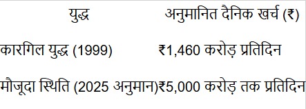 विशेषज्ञों का अनुमान है कि अगर यह सैन्य तनाव लंबे समय तक चला, तो भारत को इसका खर्च कारगिल युद्ध से लगभग 3.6 गुना अधिक उठाना पड़ सकता है।